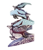 This tri-fold, double sided winter tableau opens out to give a three-dimensional view that is a both a card and a free-standing sculpture, which becomes an object of beauty in its own right.
